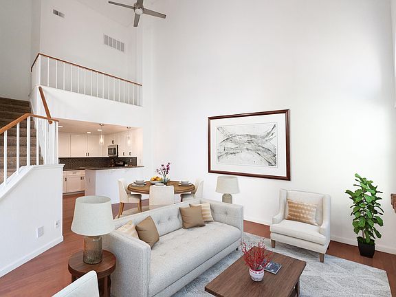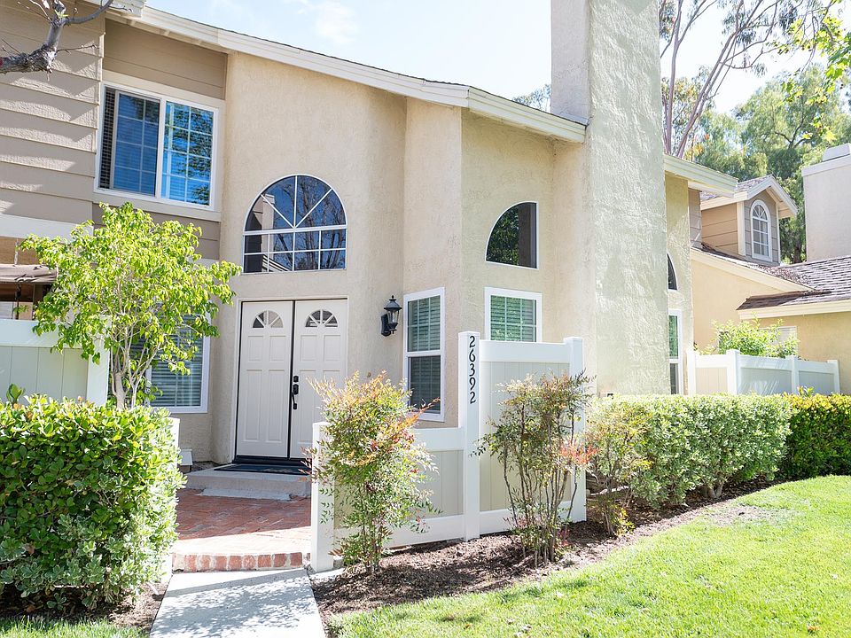 Welcome Home! This desirable 2 Bedroom, 2 Bathroom townhouse style floor plan with loft is located in the tranquil Whispering Hills Community with lovely views of the lush greenbelt and trees. Enter the brick courtyard to enter through beautiful double doors that lead you into the open floor plan with cathedral ceilings and plenty of natural light. This home features cherry laminate flooring, upgraded windows and a cozy fireplace. The renovated kitchen comes with black matte hardware, granite countertops, stainless steel appliances, recessed lighting, a pantry, and a breakfast bar. This highly sought-after floor plan has a main floor bedroom as well as a spacious primary bedroom and features a loft upstairs which can be used as a home office. The primary bedroom upstairs features vaulted ceilings, oversized mirrored closets, a private bathroom with dual sinks and a shower with tub. Enjoy the convenience of a direct access 2-car garage that also includes the washer and dryer. Low tax rate and no Mello-Roos. Enjoy this beautiful location with amazing parks and recreation, nearby shopping, easy freeway (5 and 405 via Bake Parkway) and toll road (241) access, and excellent proximity to Irvine Spectrum shopping, restaurants and entertainment, hiking, biking and nature trails!