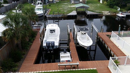 Canal Front Duplex Unit # BImmaculate, turn key ready home! Sold furnished! Swimming pool & 19k lb lift in slip. Must see! 4BR/4.5 BA. 2 decks overlooking canal & pool. Quiet location. Downstairs bar & outdoor living space. Storage unit, extra fridge & freezer. HW flrs, granite, SS appliances, gas stove & Fp. $510,000