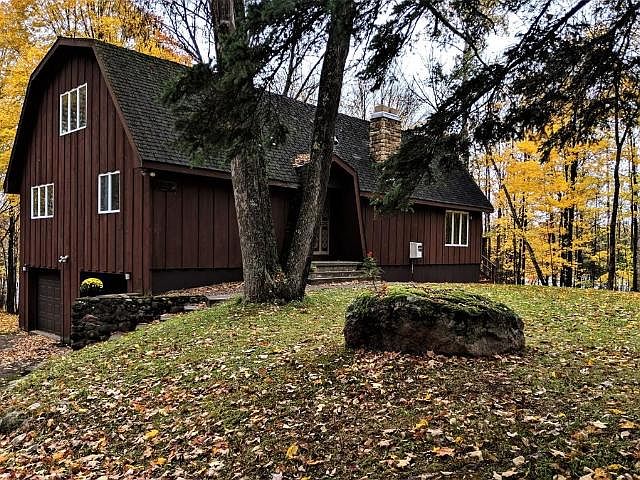 319E)Exceptional river front location! Tucked away on the edge of the city, is this unique home on a stunning lot w/160+'of frontage on the north fork of the Flambeau River. On the main floor of the house is the kitchen, dining area, living room with barn shaped ceiling, accent beams, skylights and fireplace. The spacious family room with gorgeous hardwood floors, high-end patio doors and windows that make the most of the striking river views. Also on the 1st floor is a spacious bedroom, an office/nook and a full bath. On the 2nd floor is a large sitting area loft that over looks the living room, a 3/4 bath and 2 more substantial bedrooms. The tuck-under, 2 car garage leads to the finished basement that consists of a large laundry/storage room and a walk-out rec room with a covered patio. The property also features a 2 story, 24'x34' RV garage that is insulated, heated w/ the 2nd floor framed, electrical in place and just waiting to be finished. New Furnace and air conditioning 2022