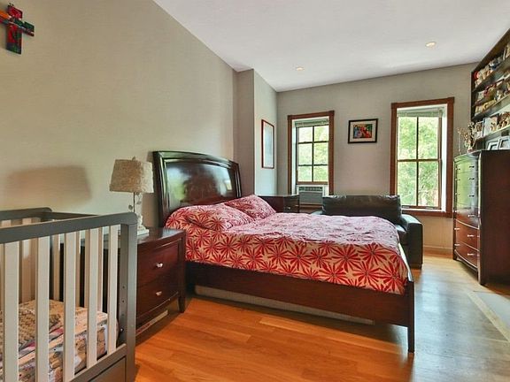 Don't miss this great value in a spacious top floor 1Br and 1Ba unit directly overlooking Hamilton Park. This condo welcomes you with an oversized foyer leading to an open modern kitchen with cherry cabinets and stainless steel appliances. The apartment presents a seamless blend of rare historic features and modern finishes. The living and dining room area feature hardwood floors, recessed lights and exposed brick wall with decorative fireplace. This space can accommodate large living/dining furniture and office space. The bathroom is renovated with neutral tiles, oversized shower, built in storage and heated floors. The large bedroom features exposed brick wall with decorative fireplace and 2 closets with custom built-in shelves and oversized doors that allow for plenty of storage. This unit has high ceilings throughout. The building offers secured entry, package room, gym and storage room for additional fee. The 1 car parking spot is deeded and located behind the building in a secured parking lot. Walking distance to PATH, buses and many restaurants, shops and cafe make this an ideal location.