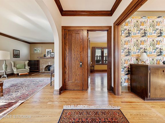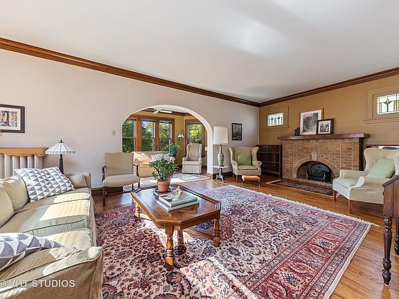 This charming and well maintained two story brick Bungalow is in walking distance to schools , Metra Train Station & Riverside's historic downtown. The main floor features an inviting foyer leading to the lovely living room with decorative fireplace and adjoining sun room. The formal dining room is perfect for entertaining and the large kitchen opens to a sunny breakfast room overlooking a beautiful landscaped backyard. Two bedrooms and a full bath complete the spacious first floor. The second story hosts three additional bedrooms and a 2nd full bath. Ample closet space is provided in all five bedrooms. The partially finished basement offers plentiful storage space, a finished room that can be used as an office or work room, plus a half bath. Other highlights include hardwood floors, lovely crown moldings, plaster walls, central AC, washer & dryer, attached garage and more! *Real Estate Taxes are pending appeal. RECENT PROPERTY TAX APPEAL WAS SUCCESSFUL - 2019 TAXES SHOULD BE LOWER