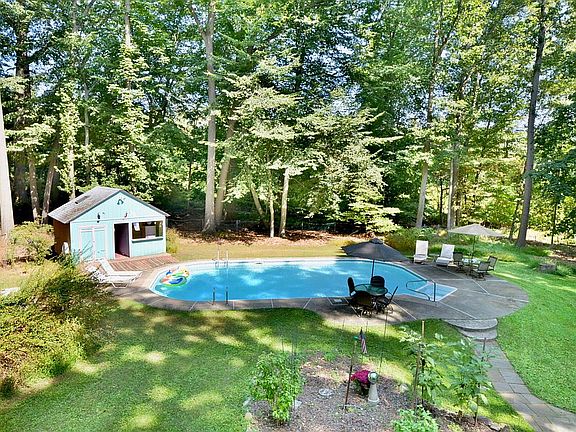 Beautiful home with many updates and swimming pool. BRAND NEW septic system. Resting on over 1.76 acres, enjoy a convenient and desirable location that is close to everything, but also a tranquil and peaceful setting surrounded by mature landscaping. Wrap-around front porch. Gorgeous remodeled kitchen w/ large island, granite counters, wet bar (with wine fridge) & stainless appliances (including commercial grade 6-burner range). Other updates were siding and Anderson windows. Hardwood flooring. Master suite with remodeled bathroom (separate tub & shower), 2 closets & balcony. Family room has a wood burning fireplace and new carpeting. Finished basement with large rec room & exercise room. Amazing and entertaining backyard with pool/spa, large deck & fenced yard. Located at end of a private cul-de-sac.