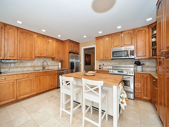 Immaculately maintained, large bi-level home with many updates. This gracious home has gleaming hardwood floors on the main level. The large living room with gas fireplace and accent lighting is perfect for entertaining. Flow into the formal dining room with picture window. A glass door separates the dining room from the renovated, eat in kitchen with stainless steel appliances and cabinets to the ceiling. Through the privacy door on the main level is the newly renovated hall bath and 3 bedrooms. The large master bedroom with double closet has an exquisite Carrara marble master bath. Lower level has tiled family room, bedroom and office.Near town and train.
