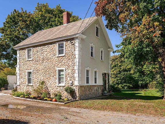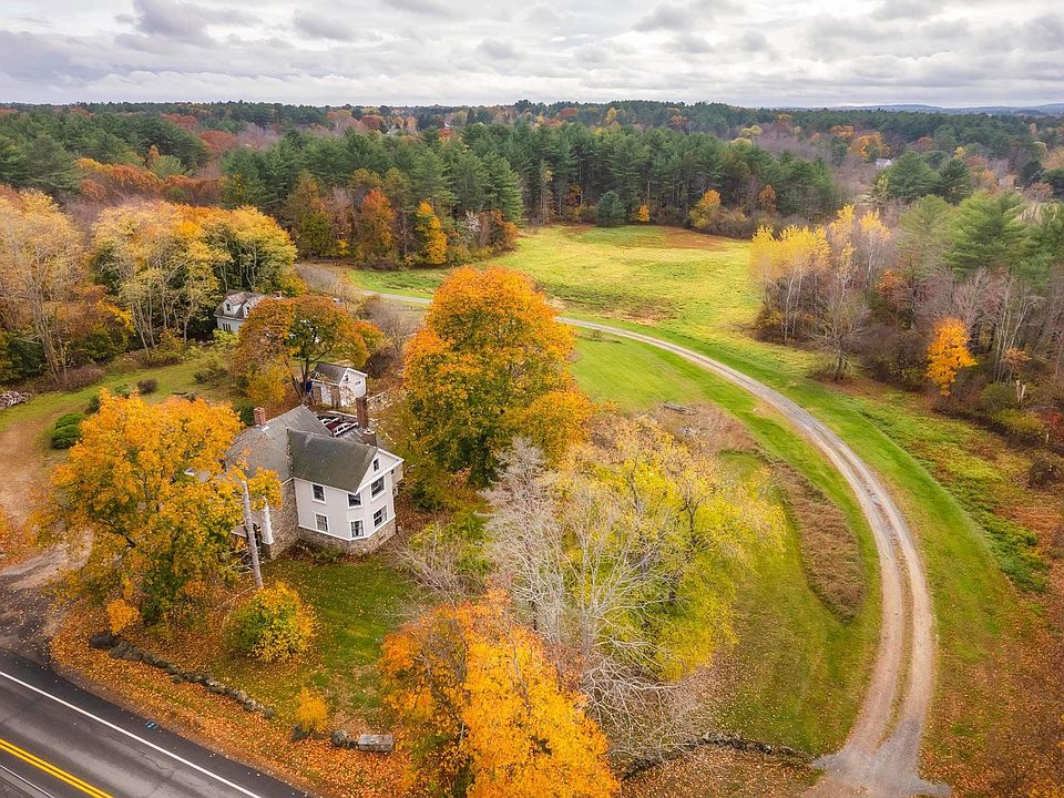 Once used as a cattle farm and blacksmith's shop, this charming c 1800 post and beam farmhouse sits on two open acres of land. The home features many original details including built-in cabinetry, pine and hardwood floors and exposed wood beams in various rooms. The first level floor plan includes a spacious, sunny living room with a fieldstone fireplace that opens to the dining area. The cozy kitchen offers a center island, walk-in pantry, a wall of windows overlooking the gardens and has a door leading to side deck. This level also has a bedroom or office option with an attached updated bath with a stone tiled shower and laundry. Upstairs are three additional bedrooms, full bath and access to a rustic loft area above the kitchen. There are two unfinished basements and a large third floor attic great for storage. The rear of the property is surrounded by conservation land, with no ability for future development. To the east side of the home, there is a granite outcropping surrounded by perennial gardens and a shed with slate roofing. The Seavey Family, who owned the property for nearly 150 years, entrusted it to the current owner in 2005 and they have renovated portions of the home including re-roofing on the east side, updated wiring throughout with a new electrical panel, many windows replaced, updated baths, plumbing and more. Barn lovers take note, the foundations for the carriage and cattle barns are still in place ready for new owners to rebuild.