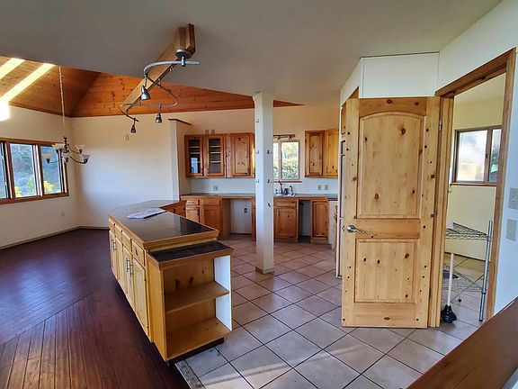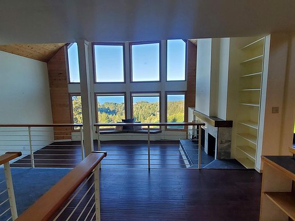 Soaring prow front with 24ft. tounge and groove knotty pine cathedral ceiling.