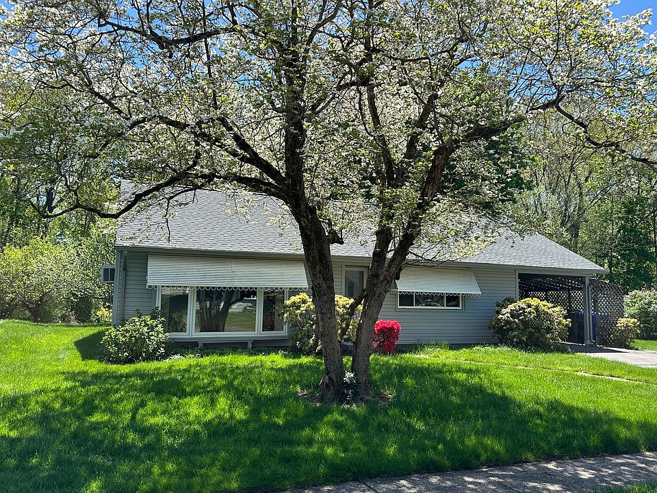 Are you looking for easy one-level living? Want shopping and restaurants close by yet have a tranquil private back yard? This ranch is for you. Unlike many homes in the area, this house has a beautiful sunroom in the back of the house, perfect for plants and enjoying the stream and natural setting behind the house. The living room is bright and cheerful with built-ins and a big bay window. You also have a formal dining room and an eat in kitchen. Two bedrooms on either side of the house provide privacy. Come and put your personal touch to this great find. Nothing to do but move in. This home has many upgrades: new vinyl flooring throughout; a new roof and siding were installed last year. The roof is guaranteed for life. The sewer line was cleared to the street and improved for future easy access. The refrigerator, stove and washer and dryer are all practically new.