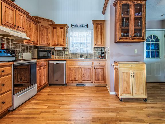 Located in Theodosia in the Lakeshore Hills area, with a seasonal lake view and a good access to the water, this could work as your retirement home or weekend and vacation home. Counting the walk-out basement, there are 3 levels here with at least a bedroom and a bath on each level. The total of 1880 square feet are efficiently laid out for easy maintenance. The cathedral ceiling adds a feeling of roominess, and the spiral staircase that accesses the upper level is of excellent design and construction. The home sits on a two-lot parcel of land, has central heat and air, and city water and sewer service. The owner is a cabinet maker and lives in another town, and his skill level will be obvious when you see this place.