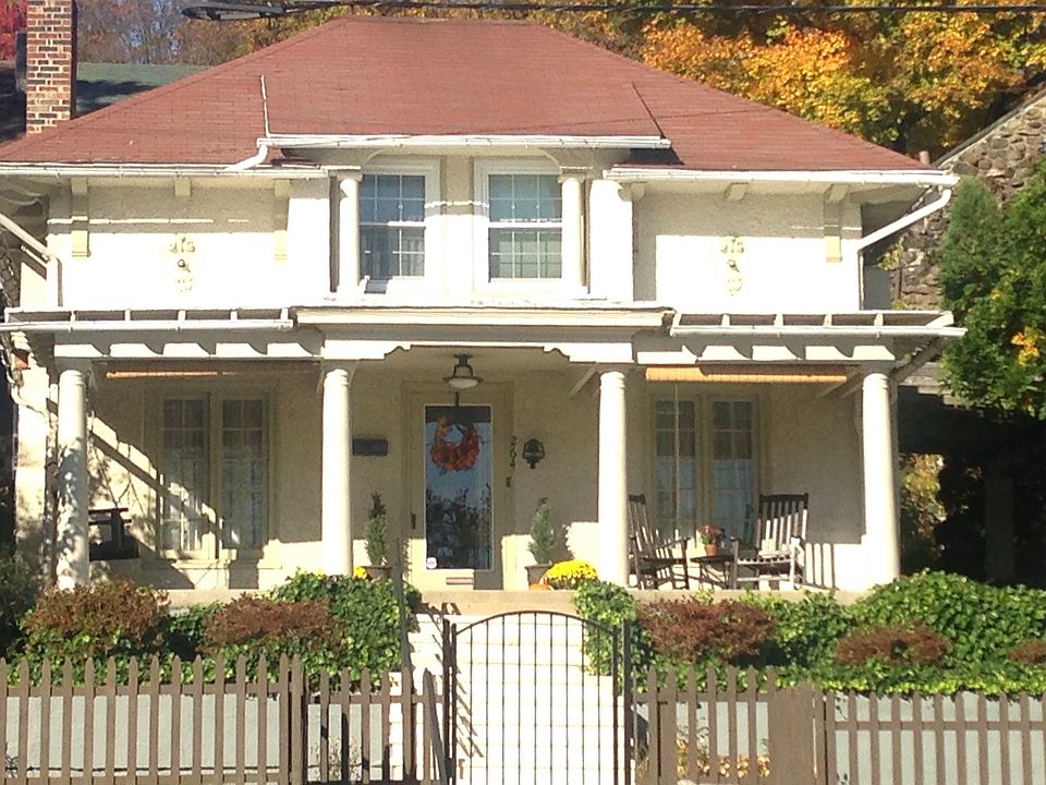 'Amazing' in Antietam is what you'll say when you visit this Mt. Penn Boro single at 264 Carsonia Ave. This conveniently located 4BR, 1 full and two half bath 2 story home offers over 2000sf of finished living area and provides easy access to schools, parks, pool, restaurants and is just minutes to 422 for commuters. This corner lot home welcomes you with a great for summertime enjoyment front porch and side patio with a beautiful Wisteria covered pergola. Step inside and experience all the old world charm and craftsmanship this home has to offer. Spacious LR offers beautiful hardwoods and a stone surround wood burning FP. The formal DR features those same great hardwoods and stained crown molding with French doors leading to the side yard Pergola. Just off the DR you'll find the sure to please eat-in kitchen with granite tops and tile back splash. Main level laundry and half bath complete the main level. Upper level features a MBR with attached 4th BR that would serve well also as a nursery in home office or sitting rm. 2 addl. generous sized private BRs and tiled bath with tub, shower complete the upper level. Don't forget to check out the LL den or playroom with the second half bath. All this plus efficient gas heat, 1 car detached garage. Plenty of natural light streams through the replacement windows, a floored attic for storage, all appliances remain, stained glass window accents and move in condition make this the one stop looking you've found your new home!