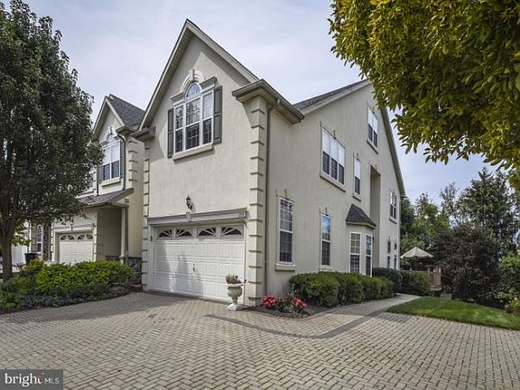 Welcome home! True pride of ownership is apparent as you approach this end unit luxurious Carriage House sitting on a wonderful location in desirable Center Point Farm! The brick paver driveway leads to this impeccably maintained home that will not disappoint! Welcoming 2 story foyer entrance with hardwood flooring, crown molding, and chandler leads to the spacious Living Room featuring hardwood flooring, and crown molding. The elegant Dining Room, complete with a bay window allowing natural sunlight to fill the space, chandelier, crown molding and chair rail molding offers space for more formal entertaining. An updated gourmet Eat-In-Kitchen features 42" cabinetry boasting crown molding, center island, wall oven, gas cooking, double sink, granite countertops, tile backsplash, recess lighting, stainless steel appliances, ceiling fan, and under mount cabinet lighting. The Sun Room features ceramic tile floor, vaulted ceiling, skylights, and ceiling fan for those cozy evenings at home. The sliding glass door leads to the large rear Trex deck - the perfect spot for outdoor enjoyment with friends and family! A Conveniently placed Powder Room with a lovely pedestal sink completes the 1st floor. Stunning Oak staircase brings you to the attractive 2nd floor. Luxurious Primary Bedroom Suite featuring, vaulted ceilings, two closets (one walk-in), and two ceiling fans. The updated spectacular Primary Bathroom offers ceramic tile floor, jetted tub, tiled stall shower, double vanity, linen closet, ceiling fan, and vaulted ceiling. The generously sized 2nd Bedroom is complete with vaulted ceiling, 2 ceiling fans and spacious walk-in closet, plus the 3rd Bedroom features ample closet space, and ceiling fan (currently being used as an office). Ideal 2nd floor laundry with shelving will make doing chores a breeze! Hall Bathroom with ceramic tile floor and ceramic tiled tub shower combination, and a hall linen closet. The marvelous 3rd floor loft offers unique space for a study, office area or fourth bedroom that includes 2 skylights, ceiling fan, vaulted ceiling, closet and heater room, plus a full bathroom with ceramic tile floor, tiled tub shower combination with skylight and vaulted ceiling. An added feature is a second HVAC system. The finished walk-out lower level offers even more living space, complete with gas fireplace with mantel, built-in cabinets with a bar sink, two closets, recess lighting and convenient powder room! The sliding glass door leads to a brick paver patio just perfect for relaxing and enjoying lovely fall evenings! Unfinished area offers ample space to meet your storage needs complete with wood shelves, workbench and metal table! Some additional amenities of this incredible property include 9' ceilings on the 1st floor, gorgeous new hardwood floors in the Foyer and Kitchen, 2 zoned HVAC ( 1 replaced in 2018), new hot water heater, central vac, custom drapes and blinds, and a newer roof replaced by the HOA! This wonderful community includes tennis and pickleball court, playground, fitness center, and snow removal to your front door provided by the HOA! Nestled in award-winning Methacton School District, this home is also conveniently located to Centre Square Commons Shopping Center, and is just a short drive to the heart of both Skippack Village and revitalized downtown Ambler, both offering quaint shops. boutiques, restaurants, coffee shops and entertainment! Ideally located with easy access to all major arteries and the Septa train line, making any work commute or day trip to the city a pleasure! This exquisite property is truly "Home Sweet Home".