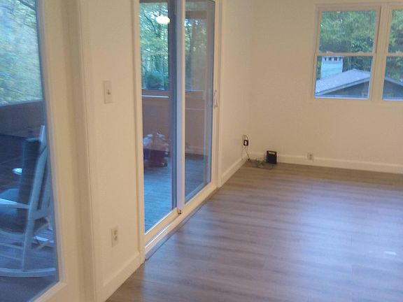 Nature-lover's paradise! Newly remodeled 3 bed/2 bath home with mountain views and nature preserve surrounding the property. Located on private road in very quiet, closely knit neighborhood, 25 minutes to downtown Asheville, 35 to Hendersonville. Home has very large screened in porch with views. Master has ensuite. Insulated storage shed under house and spacious garden shed on property. Parking pads on property. Refrigerator, electric stove and pantry space in kitchen. Stackable washer/dryer included in hallway closet. Water included in rent. Spectrum internet available with excellent service. Owner pays for water & HOA fees. Renter is responsible for electricity and internet services. Absolutely no smoking allowed on property. May consider 1 pet for the right renter.