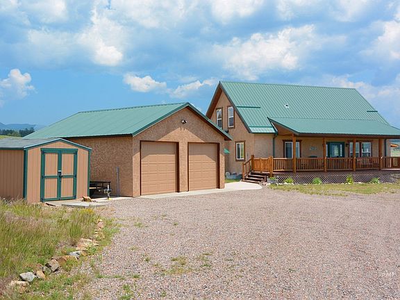 Beautiful 1.5 story home with the most stunning Sangre De Cristo Mountain Views! This home has been completely remodeled with upgrades throughout including, new high quality flooring, fully remodeled bathrooms and kitchen with new, high-end stainless steel appliances, new interior paint, new light fixtures, new interior doors, new patio doors, upgraded electric, new paved entryways, new covered entry to garage, and more. Enjoy endless mountain views from the covered porch that wraps around 2 sides of this great home. South facing floor to ceiling windows allow for passive solar heat, bright sunshine, and more views. Open floor plan with kitchen, dining, and great room with new propane fireplace, main floor master suite with remodeled master bathroom including a large, custom tiled shower. The open loft is a great place for family to work, play or for additional guest space. Detached over-sized, insulated 2-car garage with built in shelving for work area and a separate storage shed. The home is well maintained, updated, and move-in ready. Located in desirable Cuerno Verde Pines Subdivision with well maintained roads for good year round access and a short drive from Westcliffe.