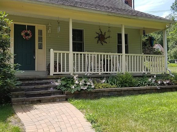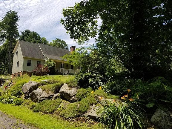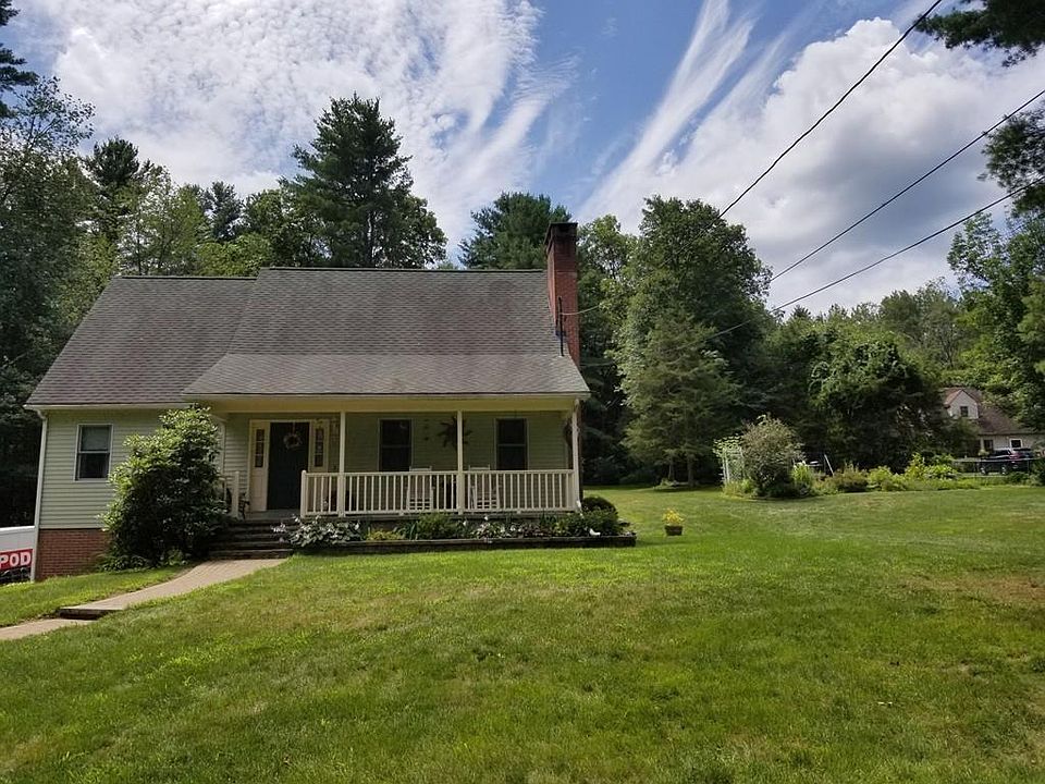 Beautifully maintained one owner home! This cape is sitting pretty off the road surrounded by stonewalls, perennial gardens and large lush lawn. Sip your coffee or favorite beverage from the inviting covered front porch or enjoy all four seasons in the large sun porch off the back. The inside does not disappoint! You are greeted with open staircase, oak hardwood flooring, spacious living room with fireplace and open design flowing into the kitchen. Kitchen features include shining granite counters, plenty of nice cabinet space and closet area which offers the convenience of first floor laundry. Master bedroom on first level with full bath and walk in closet with additional storage. Upstairs there is another spacious bedroom which is also suitable for a master, so you can take your pick! This comfortable home has a desirable floor plan, an abundance of closet and storage space and so much more. Call us today to make this special home your own!