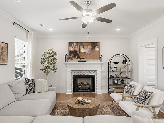 Enjoy upscale touches like quartz countertops in the kitchen and primary bath, and a striking custom tile fireplace surround that makes the living space feel extra special.