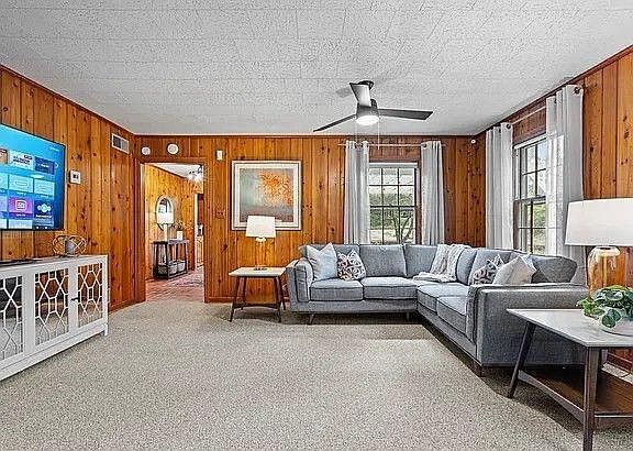 Beautiful Mid-Century Modern Cedar Sided Rach on over 15 acres only minutes to downtown Cartersville and across the street from the Etowah River! This sprawling ranch would make the perfect home for raising a family, entertaining guests, or just enjoying the benefits of owning over 15 acres in an amazing location. This home is in wonderful condition and ready for it's third owner - yes, this home has only been owned by 2 people!