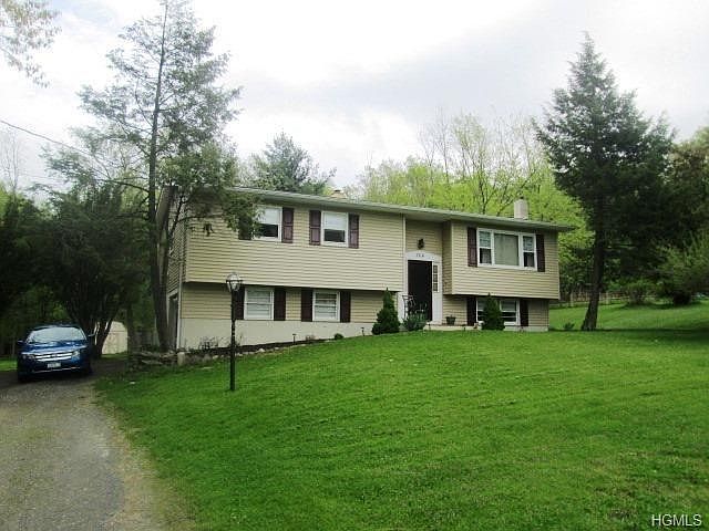 Nestled on a lovely 1 Acre parcel in a wonderful neighborhood in the highly desired Minisink Valley School District. This 3 Bedroom 2 Bathroom Bi-Level has been nicely updated with new kitchen and bathroom. The exterior includes a large elevated deck for Barbeques, Large Lawn and 2 car attached garage along with a shed. The lower level features 1 bathroom and a family room. The second level features that lovely kitchen along with a formal dining room, three bedrooms and an additional Bathroom. A woodstove is also located the living room. The taxes are low at $4500 making this home affordable.