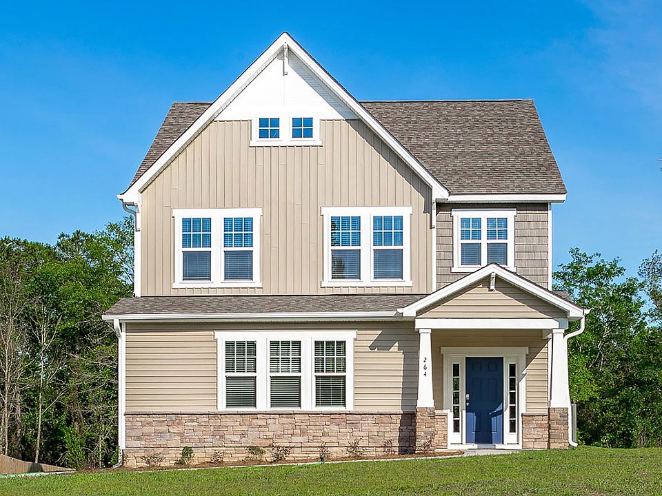 McKee Homes presents The Sullivan Craftsman open floor plan including kitchen with island, kitchen eating area, and large great room.The Sullivan Craftsman features 4 bedrooms, 2 1/2 baths and a master bedroom with trey ceiling, walk in closet and garden tub with separate shower in master bath. offers country living in a family-friendly, gated community. It's close to Ft. Bragg, Lillington and Fayetteville.