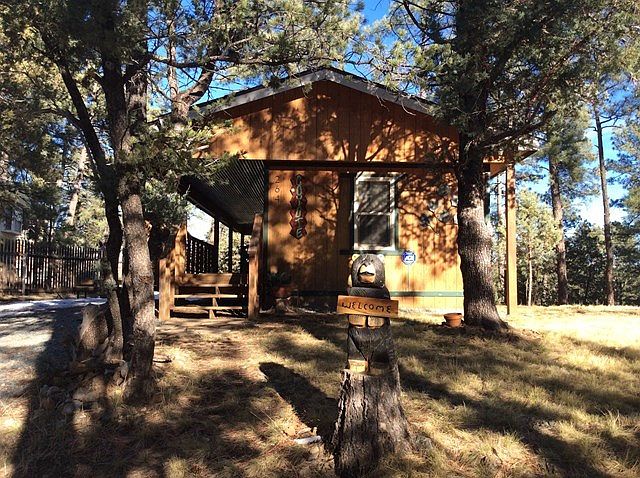 Cute as bugs ear, this little 2 bedroom cabin has been a little money maker in the weekly nightly rental pool. Sellers have taken exceptional pride in keeping this cabin cute clean and up to date. The Open floor plan allows guests to enjoy Ruidoso living any time of the year. The split floor plan with the master at the back of the house and 2nd bedroom in the front makes for perfect privacy with guests. New dish washer, new fridge and new mattresses. Large covered deck off the front and a cozy morning coffee clutch deck off the back.This is being sold Fully furnished with very nice furnishings. This is a must see. Close to town with ample off street parking. Great rental.