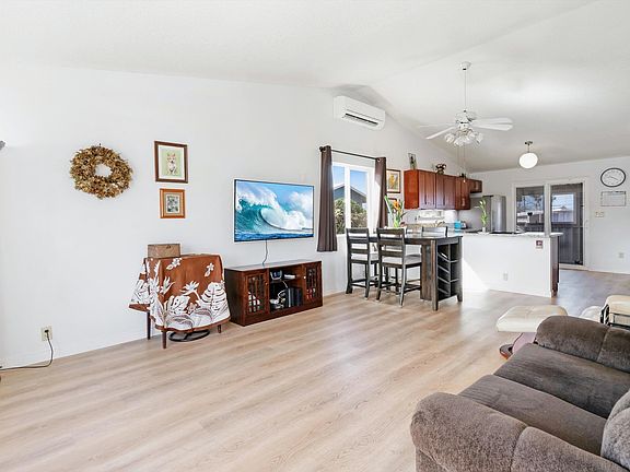 Presenting 264 Humupea St, nestled in beautiful Kihei, HI 96753—an exceptional residence offering comfort and convenience just 11 miles (approximately a 17-minute drive) from Kahului Airport, making travel a breeze for residents and visitors alike. The home is ideally situated near Kihei’s stunning coastline, providing quick access to the nearest sandy beach within minutes—perfect for soaking up South Maui’s sunny beauty and enjoying local recreation all year round. Step inside to find a thoughtfully updated kitchen featuring modern countertops and appliances, complemented by luxury vinyl plank flooring professionally installed throughout. Spacious vaulted ceilings and Mitsubishi split air conditioning systems ensure year-round comfort. Energy efficiency abounds, thanks to an owned 18-panel PV system (net metered) that keeps electricity costs remarkably low. The fully fenced, flat, and usable yard is enhanced by an advanced irrigation system serving all sides, and a dedicated storage shed for yard tools. Entertain or relax on the farmer's porch in the front, or the bonus concrete lanai on the side yard, or enjoy the enclosed lanai just off the kitchen. The main bedroom includes a full ensuite bathroom for added privacy. Also notable is the oversized garage, featuring exceptionally high ceilings for added convenience and ample storage. With its updated features, beautiful outdoor spaces, and proximity to both the beach and airport, this Kihei gem is the perfect blend of value, comfort, and coastal living. Home is in great condition. Land survey available upon request. This is a must see!