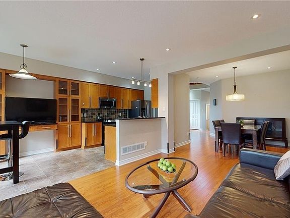 PREMIUM OVERSIZED PIE SHAPE LOT in the highly desirable area KANATA LAKES. This home offers 3 Bedrooms + Den, 3 Bathrooms, hardwood on main level, a functional kitchen w/ upgraded cabinetry, stainless steel appliances, granite countertops, 9ft Ceilings, Pot Lights throughout, matching cabinetry throughout, spacious Master bedroom with Ensuite, walk-in closet, and open to below office/den with custom built-in workstation, fully finished basement w/ Gas fireplace This property is located near the top schools in KANATA LAKES, public transit, parks, and shopping.