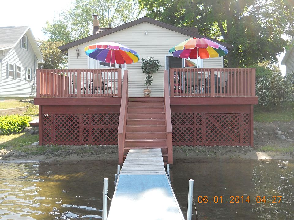 Updated lake house has 3 bedrooms, 2 full baths, gas fireplace, 1540 sq. ft of living space, a 24 X 16 composite deck, central air, oversized detached garage. all on 48 x 82.5 lot and across road a 26 X 32 garage on 50. X 125 additional lot. This house has 48 ft. of lake frontage and over $70,000 in updates and improvements since 2004.