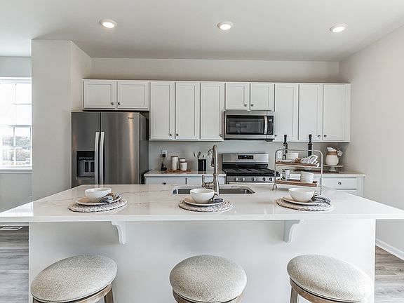 Beautiful brand-new Townhouse for rent in Villages at Aura. This is an End unit with a lot of privacy! Spacious and open concept townhouse includes top of the line upgrades such as Quartz Countertops, Upgraded Flooring, Recessed Lighting and Upgraded Cabinetry! featuring 1,969 square feet of BRAND NEW living space. Including finished rec room, 3 bedrooms, 2.5 baths and a 1-car garage along with a large driveway for additional parking. This luxury 3-story townhome includes a finished rec room as well. All appliances and blinds included. All with convenient access to major commuter routes, employment hubs. To top it all off, this home comes with America's Smart Home Package, that keeps you close to the people and places you value most. Simplify your life with a home that features hands-free communication, remote keyless entry, SkyBell video doorbell, and so much more! *Photos are from furnished model home* *This great property is available for rent from Jan 25th, 2025! Renter pays all utilities. No smoking inside the property. 1 year lease minimum