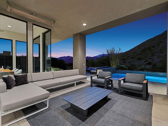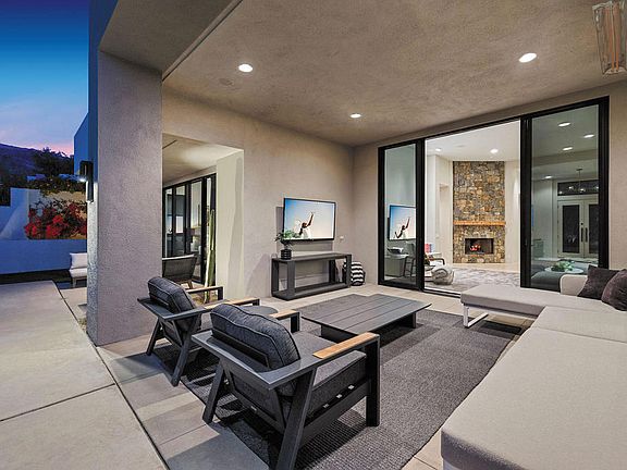 This is your sunny spot in the desert! Ready for immediate occupancy, this home offers terrific indoor / outdoor living with south sun all year and all day long. A great room with high ceilings, walls of glass and open floor plan provide wonderful views of the mountains and fairway. Three bedroom suites, with room to add a guest house if needed. Offered furnished per approved inventory, artwork is available separately.