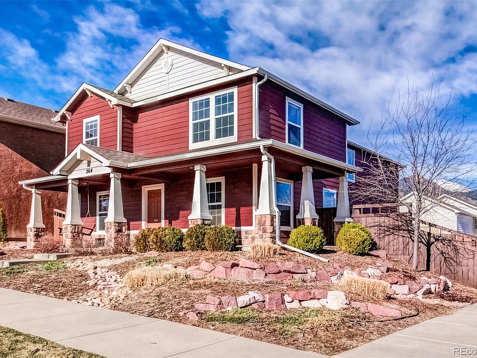 SEE MORE AT: 264Millstream.com, and call or text Scott Huger at (719) 659-2630 for more information and a private showing! Exquisite one-owner home in the sought-after Gold Hill Mesa community, nestled on a large corner lot with panoramic Pikes Peak and Front Range views! A beautifully designed open floor plan, arched doorways, polished hardwood and slate tile floors, spacious kitchen with rich slab granite, luxurious master suite, living area with a wall of custom built-ins, professionally landscaped and fenced yard, patio for outdoor living and dining, and award-winning Gold Hill Mesa amenities including parks and greenbelts, trails, fitness and community centers, and summer concerts under the stars all showcase this immaculate home. An inviting covered front porch and porch swing welcome you inside to an open living area with polished hardwood floors, large sunlight-filled windows, and a wall of built-in cabinetry and bookcases. French doors open to a convenient executive office near the front entry, and the main level guest bath offers beamed wood ceilings and copper piping. The spacious kitchen is both elegant and functional with beautiful stone tile flooring, slab granite, black appliances, ample cabinetry, counter bar for casual dining, and a large walk-in pantry and laundry area. The nearby open dining area walks out to the patio and fenced yard perfect for outdoor living, dining, and play. The tremendous upper-level family area and loft features a private nook for studying or crafts, and the generous master suite offers an attached bath with granite countertops, a luxurious soaking tub, large walk-in closet, and stunning panoramic peak views. Two additional upper-level bedrooms share a full hall bath and have beautiful views of sparkling city lights. Additional home features include designer touches throughout, central A/C, custom window coverings, vinyl windows, oversized rear entry garage, and a desirable oversized corner lot. Located in the vibrant Westside just minutes from Bear Creek Park, Garden of the Gods, Manitou Springs and downtown Colorado Springs, and in an excellent location in desirable Gold Hill Mesa with welcoming front porches, beautifully maintained grounds, lush greenbelts and trails, community internet service, and trash/snow removal, this exquisite home is not to be missed! Call Scott Huger at (719) 659-2630 for more information or a private showing, or email scott@HugerGroup.com