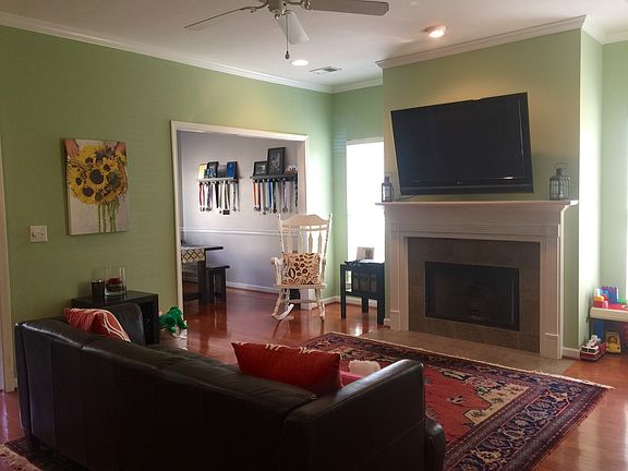 Charming 2 bedroom, 2 bathroom end unit patio home in the desirable Narrows community. Located on a quiet cul-de-sac and surrounded by great neighbors! You will love the open floor plan, hardwood floors & crown molding throughout! Spacious living room with gas log fireplace, separate dining room with chair rail. Kitchen has all-electric appliances. Master bedroom with plenty of space for king-size bed, large bathroom with double vanity, glass door shower, garden tub, and walk-in closet. Guest bedroom down the hallway, full bath with tub/shower combo. Large laundry room. Additional attic storage above garage. French door to private fenced back yard with relaxing patio & garden area. Move-in ready with fresh interior & exterior paint, new garage door, key code entry, ceiling fans, well-maintained. Neighborhood amenities include community pool & walking trail. Minutes to great shopping & restaurants. The best opportunity in the neighborhood!