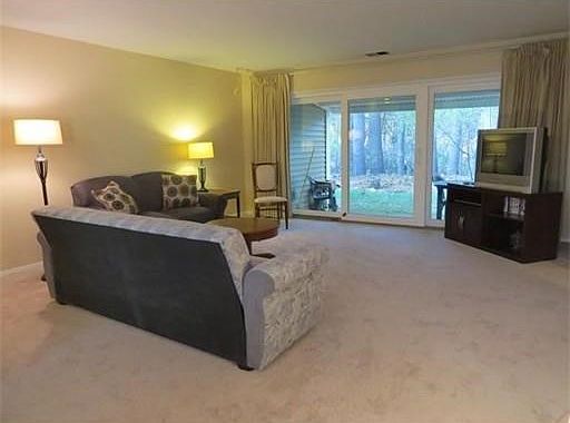 FIRST FLOOR PRIVATE END UNIT! Fabulous location for this desirable three bedroom GARDEN UNIT abutting the woods and just a short stroll to the pool and tennis courts. Updated thru-out, including windows, siding, furnace, air conditioning, carpeting, freshly painted rooms and a new electric panel (2015)A generous sized master bedroom with full bath, boasts plenty of closet space and a newer washer and dryer. The remodeled kitchen offers new flooring and counter tops plus all appliances, including a one year old dishwasher. Bright and airy, with an open floor plan, the living room is open to the dining area and overlooks the covered patio and private WOODED setting. For extra space, the third bedroom makes an ideal den or office with it's close proximity to living room. Once in a while a unit offering so much becomes available and is not to be missed.