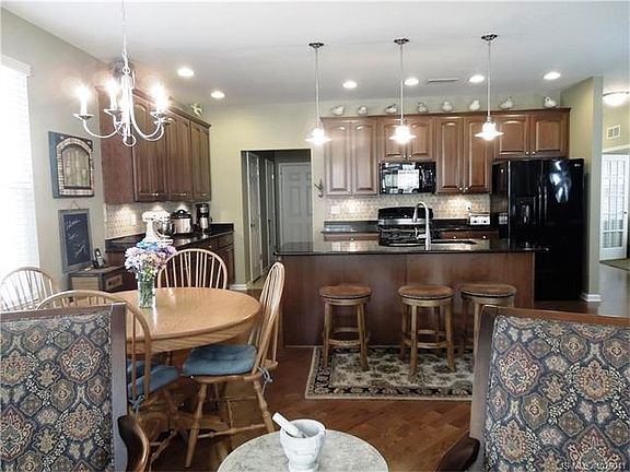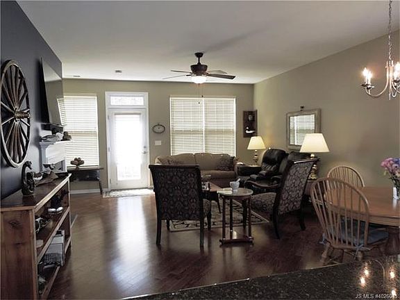 Welcome to the Monterey Model! Great curb appeal with the open porch and note the fan for those hot days! Enter the front door with etched glass to a large tiled foyer then starts the beautiful angled wood floors! The Floor Plan is very open and the kitchen is the heart of this home, with 42" Cherry Cabinets that have whisper soft close drawers and doors, pull outs for easy access to all your kitchen wares. Enjoy easy to clean granite counter tops, upgraded faucet, plenty of recessed lights, and drop-down penchant lights over the island. The kitchen is open to the dining room and the large family room with a gas fireplace with wood surround. The Master suite has neutral carpeting, walk in closet, full bath with upgraded tile floor, high vanities with Corian Tops, the stall shower has upgraded tile with bronze fixtures and frame less door and a high toilet. The 2nd bedroom is toward the front of the house so you and your guests can enjoy the utmost privacy