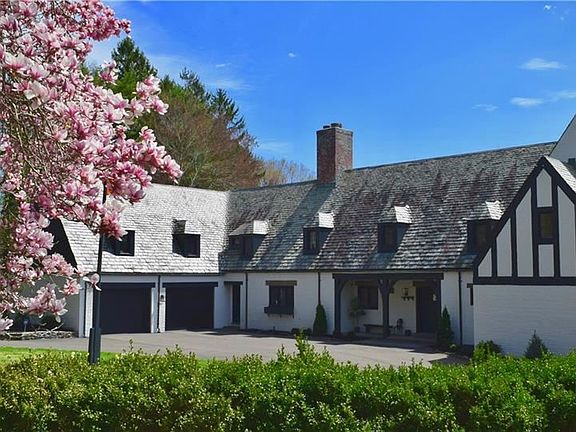 Welcome to the Malcolm Farrell House, considered one of the most spectacular estate homes in Woodbridge. Following extensive renovations, it is unparalleled by any property in the area. This enchanting 1937 Tudor was designed by noted architect Dwight Smith and features a circular driveway, original slate roof and is surrounded by 3.6 acres of picturesque fully landscaped gardens. Entertain in multiple bright and flowing living spaces or downstairs in the original wet bar. The sunlit living room presents wide plank hardwood flooring, a beamed ceiling, breath-taking garden views and a grand stone FP. The gourmet kitchen features a breakfast room and Butler's pantry with a wine cooler, drinks refrigerator, sink and an abundance of storage. The luxurious master bedroom suite includes a separate sitting room, two renovated FP's, a walk-in dressing area with multiple closets and an ensuite bathroom. Each upstairs bedroom exudes unique character, one of which has a separate "hidden" sitting room. On the main level, there are an additional two bedrooms which can be used as guest rooms or office space. The latest smart-home systems include Nest heating and Ring external cameras. The exterior boasts numerous seating areas with gorgeous views of ponds, rolling grass and mesmerizing foliage. It has a fire pit and enclosed garden to grow fresh fruit and vegetables. Set on a private lot, 264 Rimmon Road is centrally located to all of Woodbridge's amenities and its premier schools.