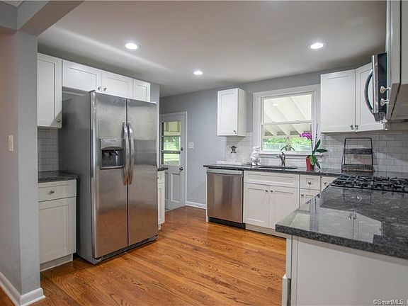 One level living in this beautifully updated ranch style home! This home features just over 1,000 square feet of living space, with 3 generously sized bedrooms, 1 full bathroom, a 1 car garage, an updated open kitchen that looks out to the backyard and enclosed patio, an updated bathroom, and gorgeous hardwood floors throughout. A beautiful fireplace that makes a great focal point in the living room, the basement is loaded with tons of storage space and a family room/rec room. Convenient access to I-95 and the Merritt Parkway, shopping centers, and downtown New Haven. Good credit is a must. No pets, no smoking allowed.