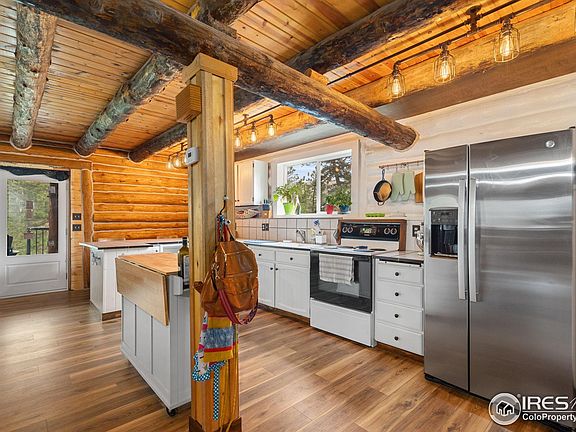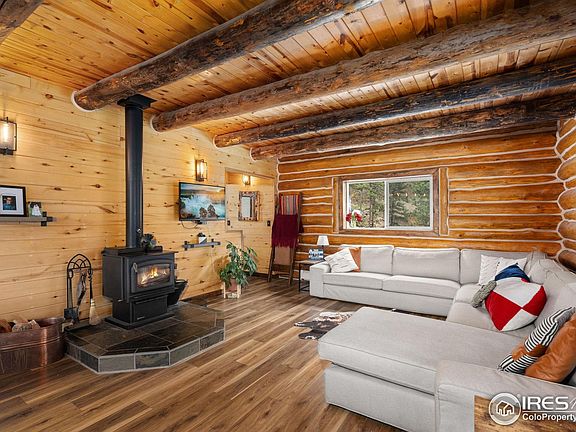 Enjoy the mountain lifestyle year-round in this beautiful private and secluded log home retreat just minutes from Fort Collins, and with no HOA or metro district. Play on your own 35 acres abutting National Forest to the east or just relax on one of five outdoor living spaces, including the beautiful front yard fire pit. Camp on your own tent site just up the hill from the house. The oversized garage will fit all of your toys. Inside you'll find multiple living spaces with new flooring, newly refinished logs, lots of upgraded and custom lighting, doors, and woodwork. The walk-out lower level has a big family room, guest room, and home gym. Upstairs is a great study / home office with views off into the forest, multiple bedrooms, and two decks. Plumbing rough ins are ready to add baths in lower and upper level in case Buyer needs more baths. Adjacent parcel available for an additional $300,000 with purchase of this home, but not for sale separately.
