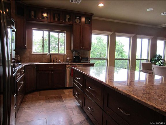 Beautiful Lake Keystone view from this gorgeous home. Some Smart home automation and security. Quality throughout including hardwood & travertine flooring, granite countertops, shaker style cabinets GE profile appliances, open living, dining & kitchen concept, all 3 bedrooms have full bath, storm cellar,professional landscaping, extensive patio areas to look at the lake. Keystone ramp provides great access to the lake. Just minutes to Tulsa. Must see, this won't last long. Additional lot available