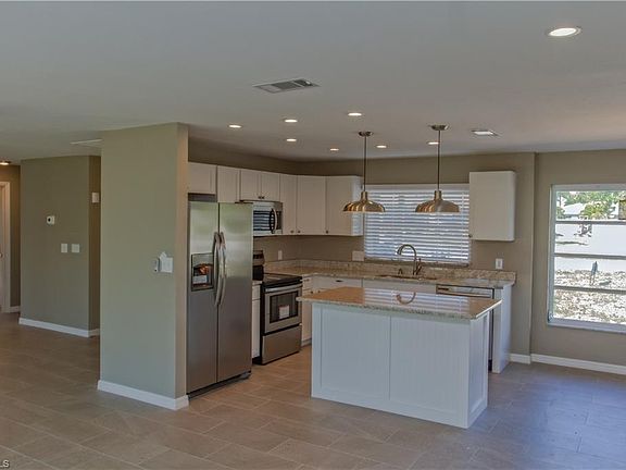 Beautifully Renovated 3 bedroom, 2 bathroom, 1 car attached garage home. This 1,544 sq ft home features an open floor plan with all NEW Island Kitchen with Granite Countertops, Beautiful white cabinets and Stainless Steel appliances. New flooring, tile in foyer, great room, kitchen, dining area, hallways and baths. New Carpet in all three bedrooms. New bathrooms with New vanities, faucets, toilets and tiled shower/tub combo. New 2018 A/C system, New ceiling fans with remotes and New light fixtures Inside and out, New Interior doors throughout including closet doors, New baseboards and New window blinds throughout. Freshly painted inside and out, New landscaping and New Garage door. Laundry in garage with Washer & Dryer and Laundry tub. Rear screened lanai and room to add a pool. Great SE location, just off Palm Tree Blvd convenient to Downtown Cape Coral, shopping, dining, Cape Coral Yacht Club and Beach and easy access to Ft Myers. On City Utilities, All Assessments In and Paid! Come check out this beauty today!