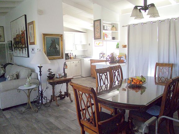 Cozy Single Level Home on Spacious .20 of an acre Lot, has Small pond, Mature trees and Fenced Back Yard. In Town with RV or Trailer Parking. 2 bedrooms and 1 bath with Bonus Room in Nicely Converted Garage. Fresh Interior & Exterior Paint, New Wood Grain Tile Flooring, Wood Beam Ceilings in Main Living Areas, Carpet in Bedrooms & Converted Space. Kitchen includes Stove & White Upgraded Cabinetry. Has Two Sheds on property for storage. Conversion not included in living space and could easily be converted back to garage.