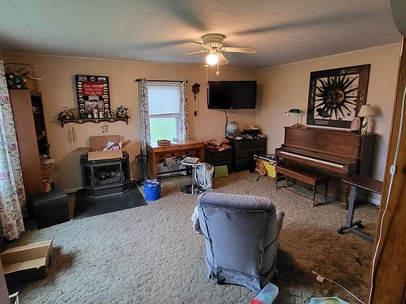 Nice ranch home located on a quiet country road. House has 3 beds and 1 full bath and is situated on 12 acres of land with lots of road frontage. A large detached garage (51'x27') with over head door and concrete floor would make a great work shop and/or provide lots of extra storage. Some of the updating includes- metal roof, hot water tank, furnace, and water softener. Great potential for someone looking to develop a homestead with livestock.