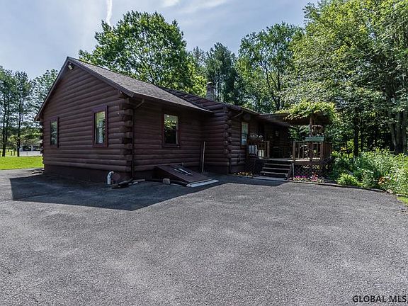 Broadalbin-Perth Sch Dist - Super spacious 3BR/2BA Lincoln Log Cabin on a beautiful 1.6 acre lot with wrap around driveway & detached 2 car garage. Enter through the 3 season enclosed porch..what a great spot for plants! Kitchen has a ton of Hickory cabinets w/antique glaze, a ton of storage & counter space, pegged hardwood floors, & a beautiful wood stove w/hearth will make winters in this charming log cabin memorable. The living room is HUGE and features a center stone fireplace and a vaulted ceiling. The master bedroom has its own ensuite bath. Two additional bedrooms & another full bath complete the 1st flr. The basement is also massive and offers future living space that could double the size of the home. Basement has a fireplace w/insert. Taxes are without exemptions.
