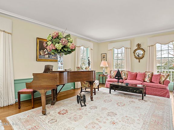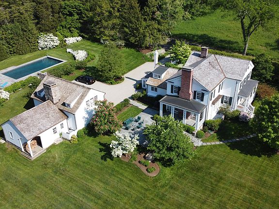 Award-winning restoration of the highest caliber. Exquisite original detail, including plaster moldings,hand-blown windows + wide plank floors. Sophisticated + pristine, yet warm + livable. Fabulous flow for entertaining w/ spacious LR + expanded Dining/Family Room, large terrace. Inviting Kitchen, Butler's pantry, Library + Office. Elegant Primary Suite w/ fpl + 2 baths, 2 additional BR's, own baths. A converted barn features fabulous 750+/- sq.ft guest suite (included in sq. footage) w/ BR, bath, kitchenette, LR w/ fpl. Heated 3-car garage + gym. Captivating setting w/ spectacular pool. Adjacent conservation area offers tranquility + privacy.