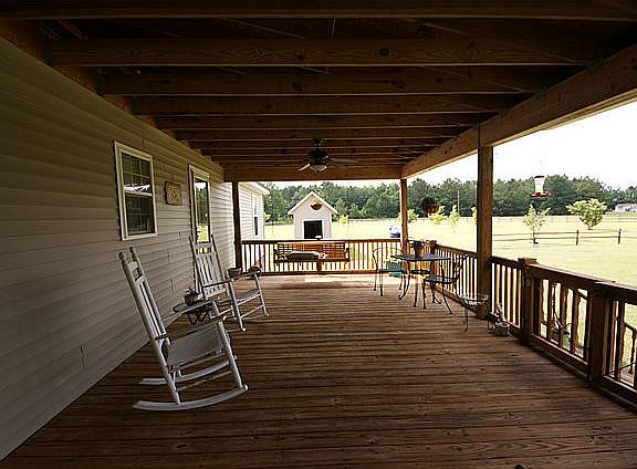 Beautiful country home oasis on 5.7 acres with pecan trees, blueberry bushes, crepe myrtles and more! The open and airy floor plan is impeccably maintained with gorgeous hardwood floors gracing the downstairs including the master bedroom. There are 2 bedrooms plus the master downstairs while the other 3 bedrooms and a loft/flex space are upstairs. The kitchen has a kitchen island, plenty of counter space/cabinets plus a walk-in pantry for extra storage. Dining area is open to kitchen with large windows that let in the natural light. Spacious great room with cozy gas fireplace is great for entertaining and gatherings. Recently renovated master bedroom boasts 2 walk-in closets, crown molding and chair rail. The master bath has beautiful tiled floors, a luxurious walk-in shower with recessed lighting & multiple shower heads and is tiled from floor to ceiling. All bedrooms are spacious with walk-in closets. Home boasts an amazing covered deck off the back that spans almost the entire length of the home - grill out or dine in rain or shine! There is a huge outbuilding that can be used as a garage or possibly converted to a horse barn since there is a riding school in the neighborhood. You will not be disappointed by this home! If square footage is important - MEASURE!!