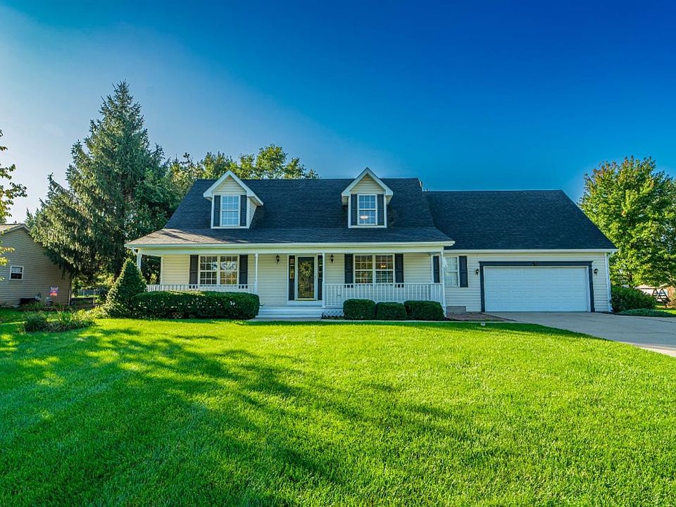 The full covered front porch invites you into this remodeled 1-1/2 story, open concept, 2,544 sq. ft, 4 bedroom, 2-1/2 bath home. Too many new improvements to list such as professionally painted inside and out, luxury vinyl plank flooring, carpeting, microwave, dishwasher, faucets, lighting, door hardware, closet organizers, and much more! Living room with vaulted ceiling open to large loft above that can serve as additional rec room, den, office, craft area, etc. Eat-in kitchen with large pantry, island seating and room for adjoining dining table or sitting area. Master bedroom with adjoining bath and double walk-in closets. Fully landscaped, nice yard, rear deck & 2-1/2 car attached garage. Roof and skylights are also only approximately 4 years old, high efficiency furnace with newer air conditioning unit, high end owned Kinetico water softener & city sewer. Enjoy no HOA and low taxes! Schedule a time to come look at this move-in ready home now before this opportunity passes you by!