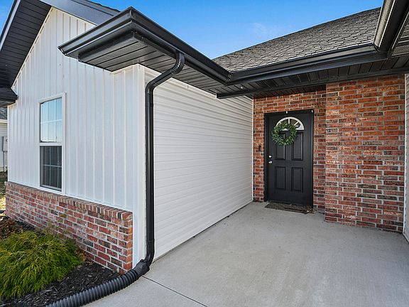 Tucked away in a quiet corner, this beautifully designed 3-bedroom, 2-bath home combines modern elegance with everyday comfort. Inside, the vaulted ceilings and open-concept floor plan create an airy and inviting space. The living area features a stunning fireplace with custom-built shelving, perfect for cozy evenings or entertaining guests.The kitchen is a true standout, featuring granite countertops, custom cabinetry, a coffee bar, and a large center island with a deep farmhouse sink and stylish gold fixtures. The walk-in pantry provides extra storage, while the adjacent dining area offers plenty of natural light with large windows overlooking the backyard.The primary suite is a peaceful retreat with a board and batten accent wall, dual vanities, a spacious walk-in shower, and a large walk-in closet. Additional bedrooms are generously sized with great closet space. A dedicated laundry room with a built-in workspace adds even more convenience.Outside, enjoy a partially fenced backyard with a patio for grilling and entertaining and mature trees that add privacy and shade. With its modern finishes, functional layout, and prime location just minutes from Rogersville schools and Springfield amenities, this home is a must-see!