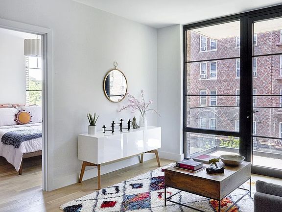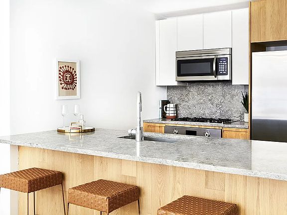 Discover this bright, south-facing 1-bedroom home featuring ample closet space, a separate kitchen, and a large balcony. Inspired by the Prospect Park Boathouse, 264 Webster offers luxury living in Kensington. The kitchen boasts Symphony Gray Caesarstone countertops, white matte lacquer cabinetry, and premium stainless steel appliances. The primary bath includes unique ceramic tiles and a soaking tub. Enjoy the luxury of private outdoor space with striking panoramic and landmark views. The full-service building offers unparalleled amenities, including full-time doorman, a gym, resident's lounge, and pet spa. Additional conveniences include private parking, and private storage for rent. Application Fees $695 Processing fee of (non-refundable) $125 Screening fee per person 18+ (non-refundable) $500 Expedite application fee (non-refundable, if applicable, must sign expedite application form) $1,500 Refundable Move-In Deposit Building Fee
