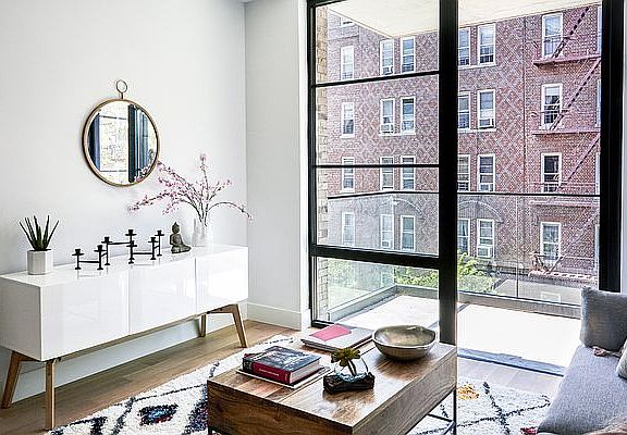 Gorgeous 1 Bedroom 1 Bath with Private Balcony in Kensington Luxury Doorman Building! FEATURES - Luxurious living room with oversized floor to ceiling steel frame windows and private balcony - Spacious bedroom with oversized closets and great views - Spa bathroom is designed with white textured ceramic subway tiles, gray porcelain floor tile, and a deep soaking tub - Open Chef's Kitchen features Gray Caesarstone countertops and backsplashes, white matte lacquer and custom Danish oak cabinetry and premium appliances by Bertazzoni, Fisher & Paykel, and Bosch. - Central Climate Control with thermostats in every room - In Unit Bosch Washer/Dryer - Wide-plank oak flooring throughout BUILDING AMENITIES - 24/7 Attended Lobby and Staff - Fitness Room, Children's Playroom, Library / Co-work Space, Lounge / Game room with Pool Table - Roof Deck with 360 views featuring an Outdoor Kitchen, Gas Grill, Wet Bar and Premium Outdoor Furniture
