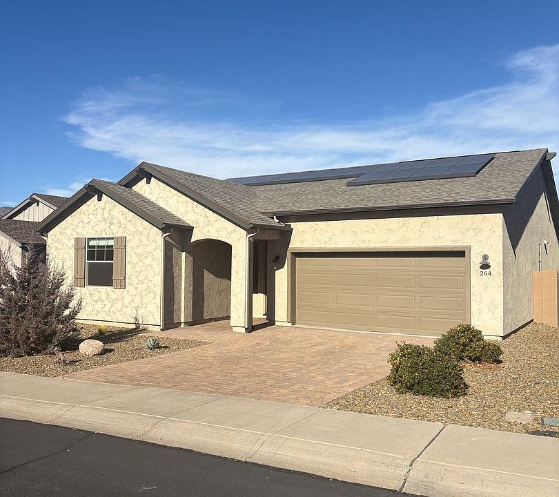 Beautifully crafted with energy efficiency, durability, and comfort in mind, this home showcases thoughtful design in every detail. The spacious great room is ideal for entertaining and flows seamlessly to the covered patio. Stunning cabinetry and upgraded granite counters elevate the kitchen with a refined, elegant feel. Owned solar panels provide efficiency, while new, laminate flooring modernize the space.