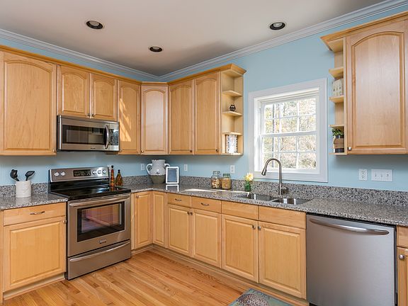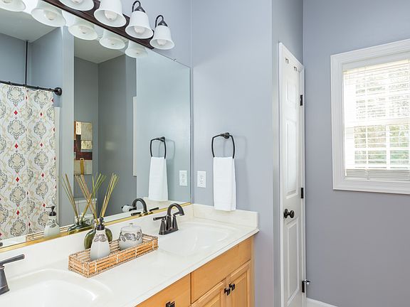 Please call agent Shane Devine at 919-605-0031 for showing. Cul-de-sac home with first floor master and large private flat lot. Hardwood flooring and designer colors on walls throughout the first floor give you a feeling of warmth. NEW carpet upstairs. All new stainless appliances.in large kitchen that offers lots of cabinet and counter space. Dining room is spacious and leads out to the large deck overlooking the backyard. Front porch and backyard brick patio provide space for quiet time or entertaining. NO HOA fees!