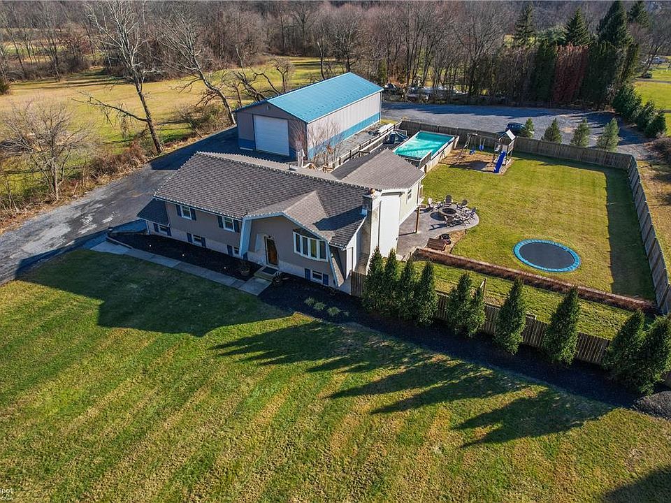 Seller has received MULTIPLE OFFERS, please send HIGHEST & BEST Offer by 8PM 12/29. Gather your family & schedule your tour of this AMAZING HOME in an INCREDIBLE LOCATION! This home sits on OVER 2ACRES with PANORAMIC MOUNTAIN VIEWS to enjoy all 4-SEASONS entertaining your friends, family & pets. Are you looking for a POLE BUILDING GARAGE (70X35) heavily INSULATED & HEATED to utilize for your business or hobbies? This home offers a $35K GEO-THERMAL HEATING & COOLING SYSTEM that works great keeping the home warm & cool while ensuring LOW-UTILITY COSTS year round. The home sits in EAST PENN SCHOOL DISTRICT & this TWP has extremely AFFORDABLE TAXES. There is also a 2-Car ATTACHED GARAGE w/POWER DOORS. The ROOF is newer & most WINDOWS also. There is a ton of OPEN SPACE inside & out of this property! The new owners will enjoy many PROFESSIONALLY LANDSCAPED upgrades like added TREES, installed a STAMPED CONCRETE COVERED PATIO, nice FLAT FENCED YARD, HARDSCAPED RETAINING WALL, built in YARD TRAMPOLINE, MULCHED SWING SET AREA, POOL w/DECK all around it, beautiful HERB/VEGETABLE GARDEN plus a FIRE PIT & more. The interior is CLEAN & WELL MAINTAINED offering all NEW FLOORING, REMODELED KITCHEN & BATHROOMS w/GRANITE COUNTERS & a ton of CHARM. The FINISHED WALK-OUT basement area has a nice BRICK FIREPLACE for WOOD BURNING warmth & ambiance. The LAUNDRY ROOM is rough plumbed for slop sink & there is a WATER SOFTENER & FILTRATION SYSTEM for added peace of mind & protection from hard water.