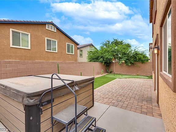 <<Ask for $15K Buyer Incentive!>> Merely 4 years old, this exquisite two-story residence rests in a serene enclave near Las Vegas' dynamic heart. With five ample bedrooms (including one on the first floor) & three baths, the home offers abundant leisure space & storage. Revel in the contemporary design, relishing the chef's kitchen with a walk-in pantry, and spacious living areas like the welcoming front foyer and expansive 2nd-floor loft. The open layout flows effortlessly, leading to the chef's kitchen and roomy living area. Enhanced with prewired 5.1 speakers, it's poised for modern entertainment. Complete with a two car garage & picturesque western mountain views, this gated retreat blends comfort with prime centrality. Outdoors, the backdrop features pavers, a putting green, and an wider/elongated side yard spanning the home's length. Unwind in the custom-built tub or above-ground spa. Secure your viewing today for this matchless 3113 sqft gem in 89146—an opportunity not to miss!