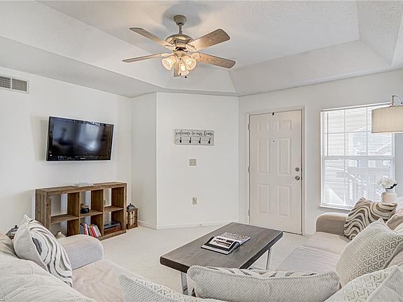 Welcome home to this move-in-ready upper-level condo with neat and neutral paint throughout! Incredible floor plan that allows for easy flow between living areas. Large kitchen features luxury vinyl floors double sink, dishwasher, built in microwave, and stainless refrigerator to remain. Both bedrooms are nicely sized and feature walk in closets! Private deck at the rear of the home is accessible through the kitchen and primary bedroom suite, making a peaceful spot to relax or entertain. Serene setting minutes away from shopping and dining! SEE AGENT ONLY REMARKS.