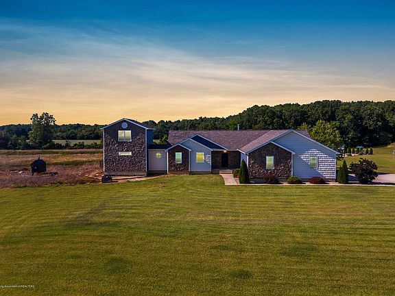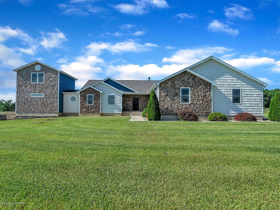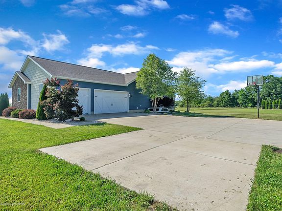 This one of a kind, custom built, one owner home is approx 3,500 sq ft and has a fully finished basement with a walk out. When you enter you are greeted with a gorgeous living room with a stone wall fireplace, a large picture window, and vaulted ceilings. The dining room is accented with wainscoting and the sliding glass door opens up to the deck and a magnificent view of 10+ acres and an in ground pool. The kitchen boasts two toned Kraft Maid Cabinets with granite counter tops, a beautiful tile back splash, and commercial grade stainless steel appliances. Off of the kitchen is a 1st floor laundry room and a 3 car attached garage. The home features a split bedroom layout. Two spacious bedrooms, both with walk in closets and a Jack and Jill bath are located on one end of the home.